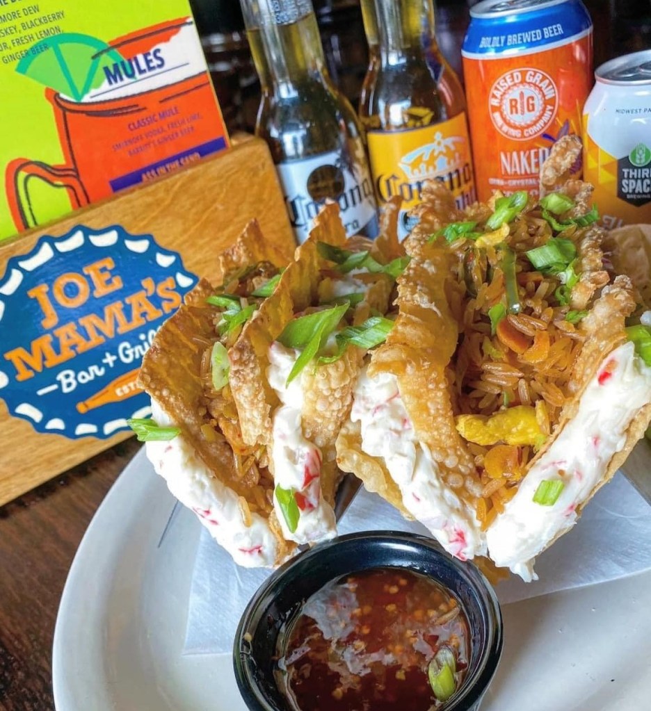 These heaven-on-earth tacos can be found at Joe Mama’s Bar and Grill. They are not served daily, only as a special. These come disassembled, so you have to construct them yourself.