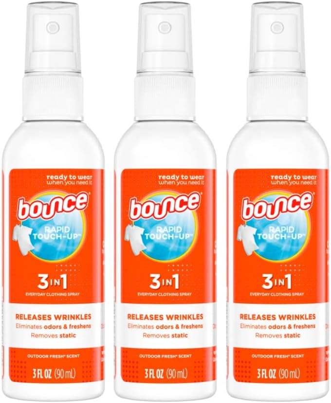 Bounce Anti Static Spray, 3 in 1 Instant Anti Static Spray & Instant Wrinkle Release, Odor Eliminator & Fabric Refresher, Travel Size (3 Oz,Pack of 3)