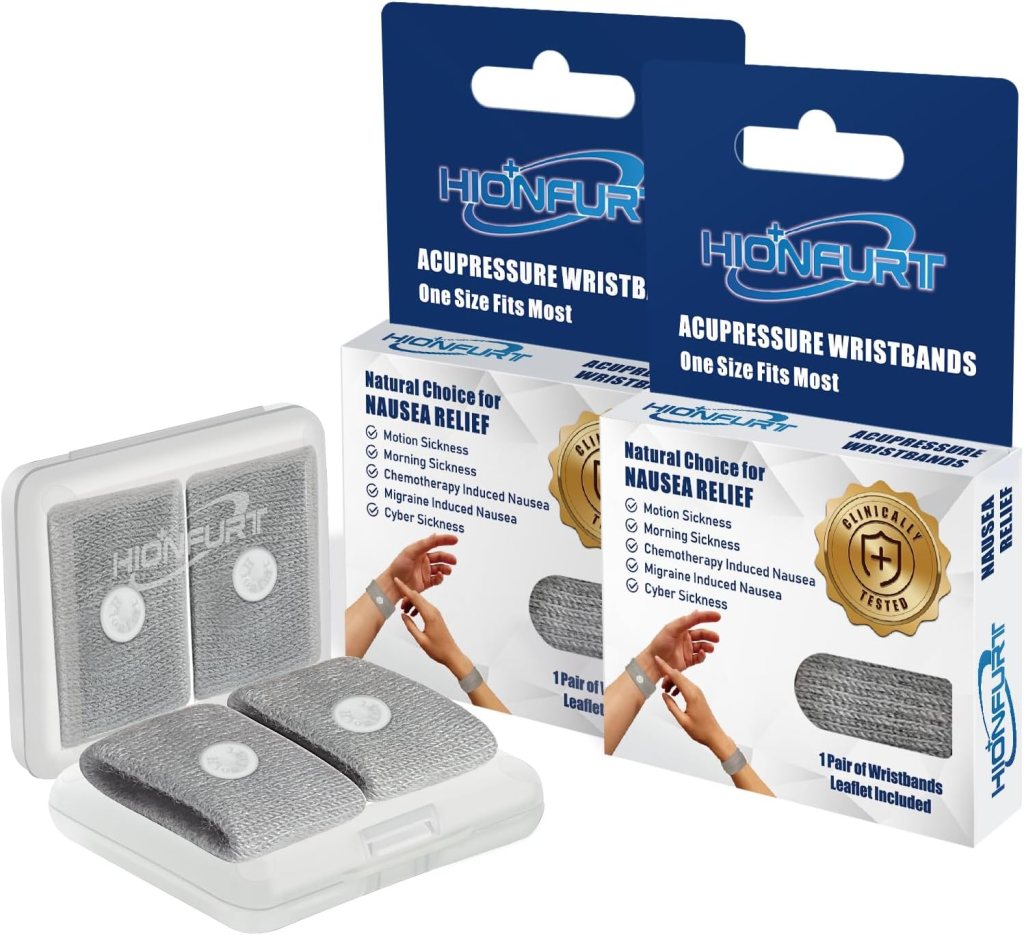 Acupressure wristbands are clinically tested and recommended by healthcare experts to relieve nausea, including motion sickness. These are soft and comfortable, washable and reusable.