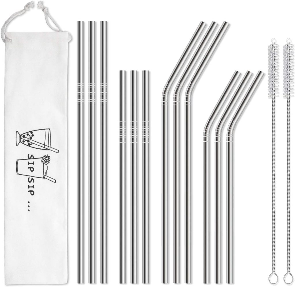 12-Pack Reusable Stainless Steel Metal Straws with Case – Long Drinking Straws for 30 oz and 20 oz Tumblers