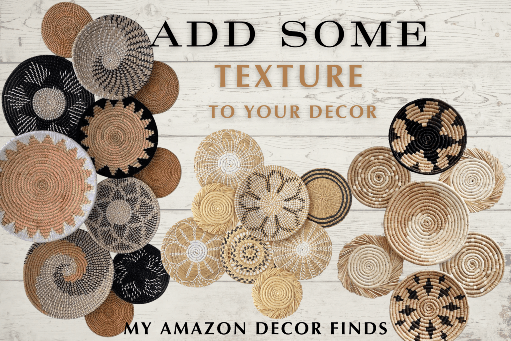 When I saw these (set on right in picture above) I knew they weren’t getting hung on the wall. The 3 largest pieces have a little depth to them, I wouldn’t call them bowls, but like a shallow platter shape. Those are perfect for entry tables to collect mail, keys, whatever you need to put down when you come in the door. The flat “baskets” can be used on a coffee or end table to add some texture under candles, plants, frames, lamps…. The possibilities are endless with these.